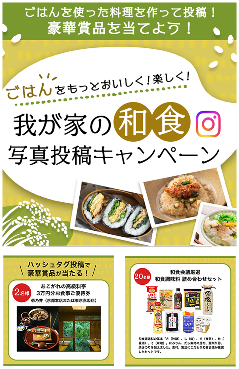 和食文化醸成のため、米の消費拡大や喫食頻度増加に繋がる新しいメニューや食べ方の創出を目的とした、消費者キャンペーンを実施しました。