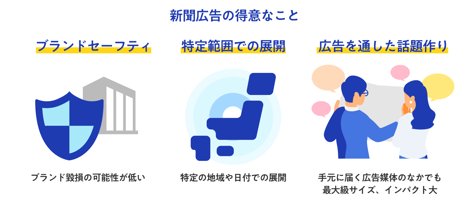 続いて、さまざまな広告媒体のなかで「新聞広告」を打つメリットについてご紹介します。